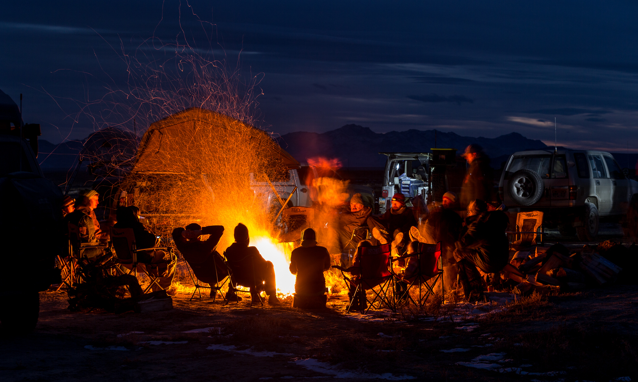 Freeze Your Tail Off Published on 11 March 2016 in AdventuresFull resolution (2048 × 1227) ← Previous Next → A great fire is the best way to warm up the campsite in the Great Salt Lake Desert in winter.